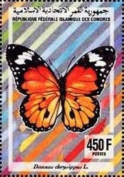 Visibility: public Image owner: none postage 5/24/1994 450fr multi issue=Insects 1994 dt=insects (1994 Comoro Islands) d=Danaus chrysippus (1994 Comoro Islands) unwmk perf=13.25 Crops No visible images cropped from this one. Measurements Resolution is unknown. Source Source name: Colnect File URL: http://i.colnect.net/b/3467/869/African-Monarch-Danaus-chrysippus.jpg Uploaded April 17, 2017, 12:16 am by Stan Shebs |