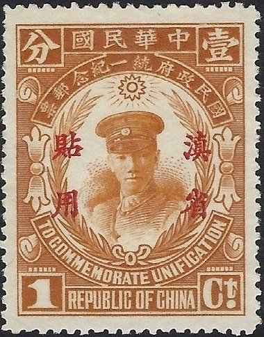 Visibility: public Image owner: none postage 1c brnorg issue=1929a d=President Chiang Kai-shek ovpt=four chars oc=blk on=issuer=China-5/1929-1c unwmk Crops No visible images cropped from this one. Measurements Resolution is unknown. Source Source name: Colnect File URL: http://i.colnect.net/b/3842/315/Chiang-Kai-Shek-1887-1975-Yunnan-overprited.jpg Uploaded April 17, 2017, 10:36 am by Stan Shebs |