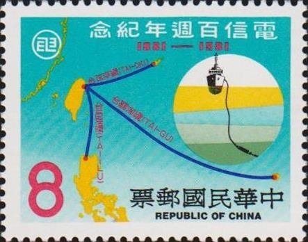 Visibility: public Image owner: none postage 12/28/1981 $8 multi issue=100th Anniversary of Chinese Telecommunications Service d=map of Taiwan & Pacific Ocean & submarine cable Crops No visible images cropped from this one. Measurements Resolution is unknown. Source Source name: Colnect File URL: http://i.colnect.net/b/3026/048/Map-of-Taiwan-and-Pacific-Ocean-and-Submarine-Cable.jpg Uploaded April 17, 2017, 4:04 pm by Stan Shebs |