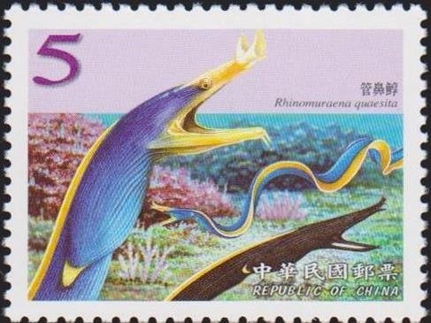 Visibility: public Image owner: none postage 5/16/2005 $5 multi dt=fishes (2005 China, ROC) d=Rhinomuraena quaesita (2005) unwmk Crops No visible images cropped from this one. Measurements Resolution is unknown. Source Source name: Colnect File URL: http://i.colnect.net/b/3002/495/Ribbon-Moray-Rhinomuraena-quaesita.jpg Uploaded April 17, 2017, 5:55 pm by Stan Shebs |