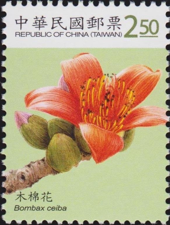 Visibility: public Image owner: none postage 10/14/2009 $2.50 multi dt=flowers (2009 China, ROC) d=Bombax ceiba (2009) unwmk perf=13.5x12.5 Crops No visible images cropped from this one. Measurements Resolution is unknown. Source Source name: Colnect File URL: http://i.colnect.net/b/3068/562/Cotton-tree-Bombax-ceiba.jpg Uploaded April 17, 2017, 6:11 pm by Stan Shebs |
