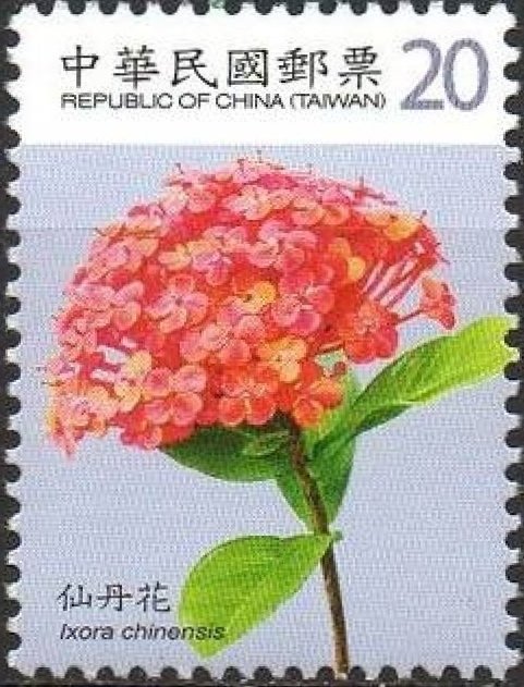 Visibility: public Image owner: none postage 1/20/2010 $20 multi dt=flowers (2010 China, ROC) d=Ixora chinensis unwmk perf=13.5x12.5 Crops No visible images cropped from this one. Measurements Resolution is unknown. Source Source name: Colnect File URL: http://i.colnect.net/b/3551/675/Ixora-chinensis.jpg Uploaded April 17, 2017, 6:16 pm by Stan Shebs |