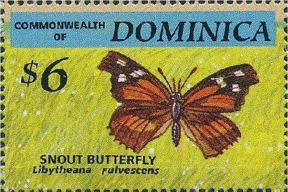 Visibility: public Image owner: none postage 3/15/1994 $6 multi issue=Endangered Species - Birds and Insects d=snout butterfly Libytheana fulvescens wmk=mult crown & script CA perf=14.25 Crops No visible images cropped from this one. Measurements Resolution is unknown. Source Source name: Colnect File URL: http://i.colnect.net/b/3199/845/Dominican-Snout-Libytheana-fulvescens.jpg Uploaded April 17, 2017, 9:25 pm by Stan Shebs |