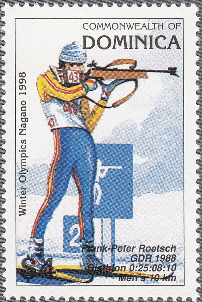Visibility: public Image owner: none postage 7/15/1997 $4 multi issue=Winter Olympics 1998 d=Frank-Peter Roetsch wmk=mult crown & script CA perf=14.25 Crops No visible images cropped from this one. Measurements Resolution is unknown. Source Source name: Colnect File URL: http://i.colnect.net/b/3413/853/Frank-Peter-Roetsch-1988-men’s-biathlon.jpg Uploaded April 17, 2017, 10:13 pm by Stan Shebs |