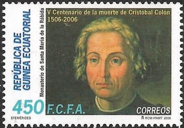 Visibility: public Image owner: none postage 450fr multi issue=500th anniversary of the death of Ch dt=Anniversaries (2006 Equatorial Guinea) unwmk Crops No visible images cropped from this one. Measurements Resolution is unknown. Source Source name: Colnect File URL: http://i.colnect.net/b/3425/198/500th-anniversary-death-of-Cristobal-Colón.jpg Uploaded April 18, 2017, 7:50 pm by Stan Shebs |