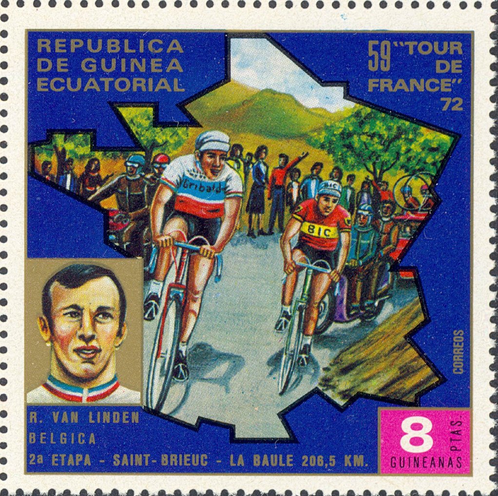 Visibility: public Image owner: none postage 5/22/1973 8p multi issue=Tour de France 1973 d=R. van Linden unwmk Crops No visible images cropped from this one. Measurements Resolution is unknown. Source Source name: Colnect File URL: http://i.colnect.net/b/2724/453/Rik-Van-Linden-1949-Saint-Brieuc---La-Baule-2065-km.jpg Uploaded April 18, 2017, 8:20 pm by Stan Shebs |