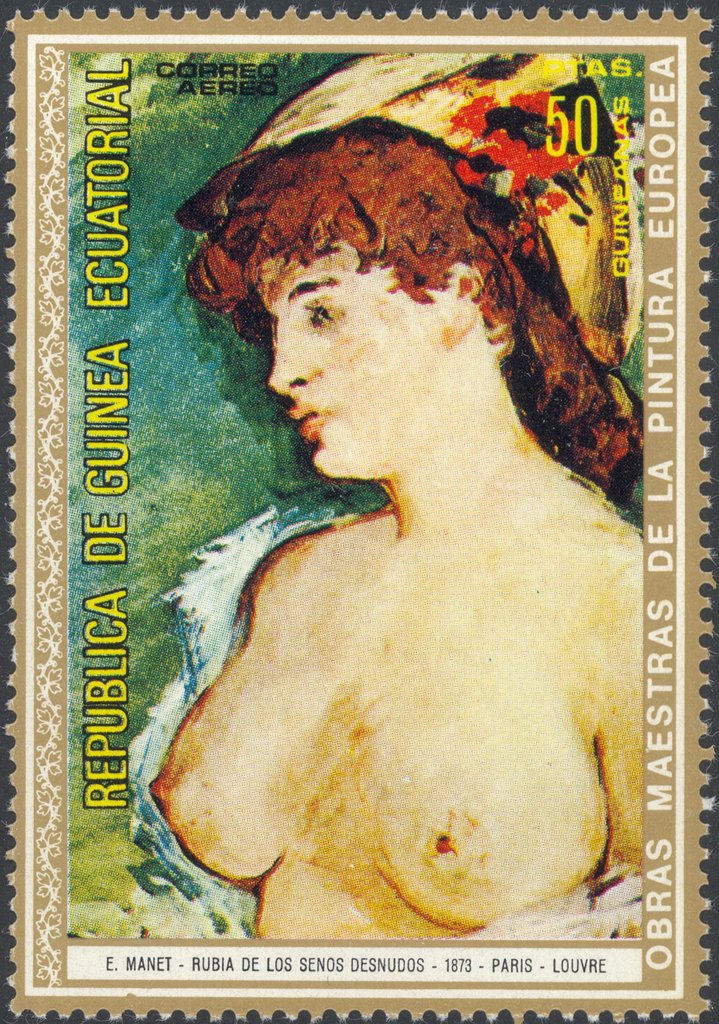 Visibility: public Image owner: none postage 6/29/1973 50p multi issue=Nude Paintings dt=Nude paintings (1973) d=by Manet unwmk Crops No visible images cropped from this one. Measurements Resolution is unknown. Source Source name: Colnect File URL: http://i.colnect.net/b/2737/188/E-Manet--Blond-Woman-with-Bare-Breasts.jpg Uploaded April 18, 2017, 8:20 pm by Stan Shebs |