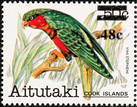 Visibility: public Image owner: none postage 9/22/1983 48c multi issue=1983 surcharges dt=birds (1981 Aitutaki) d=Vini stepheni (1981) oc=blk on=50c-Vini stepheni unwmk Crops No visible images cropped from this one. Measurements Resolution is unknown. Source Source name: Colnect File URL: http://i.colnect.net/b/3854/317/Stephen-s-Lorikeet-Vini-stepheni.jpg Uploaded April 19, 2017, 4:11 pm by Stan Shebs |