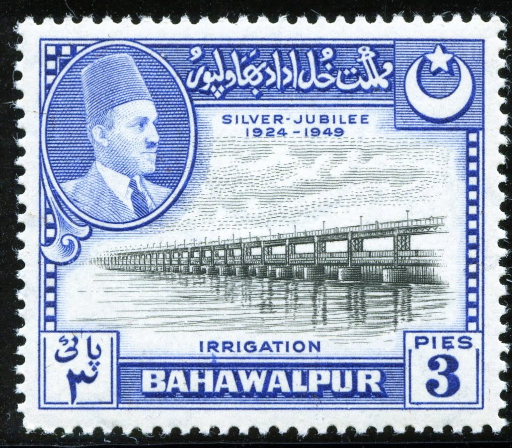 Visibility: public Image owner: none postage 3/3/1949 3p ultra&blk issue=25th Anniversary of the Reign of Sadeq Mohammad Khan V d=Panjnad Weir wmk=crescent & star row Crops No visible images cropped from this one. Measurements Resolution is unknown. Source Source name: Colnect File URL: http://i.colnect.net/b/3955/291/Panjnad-Dam-Emir-of-Bahawalpur.jpg Uploaded April 19, 2017, 4:41 pm by Stan Shebs |