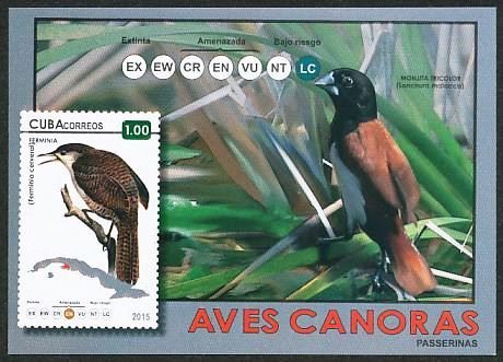 Visibility: public Image owner: none Crops No visible images cropped from this one. Measurements Resolution is unknown. Source Source name: Colnect File URL: http://i.colnect.net/b/3661/825/Zapata-Wren Ferminia-cerverai-Tricolored-Munia-Lonchura-.jpg Uploaded April 20, 2017, 3:03 pm by Stan Shebs |