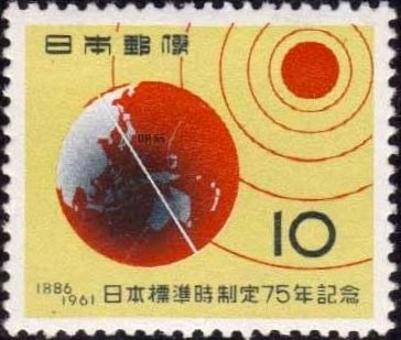 Visibility: public Image owner: none postage 7/12/1961 10y issue=Japanese standard time 75th d=globe Showing Longitude 135° E. and Sun unwmk perf=13.5 Crops No visible images cropped from this one. Measurements Resolution is unknown. Source Source name: Colnect File URL: http://i.colnect.net/images/b/607/325/Time-Zones.jpg Uploaded August 25, 2014, 1:43 pm by Stan Shebs |