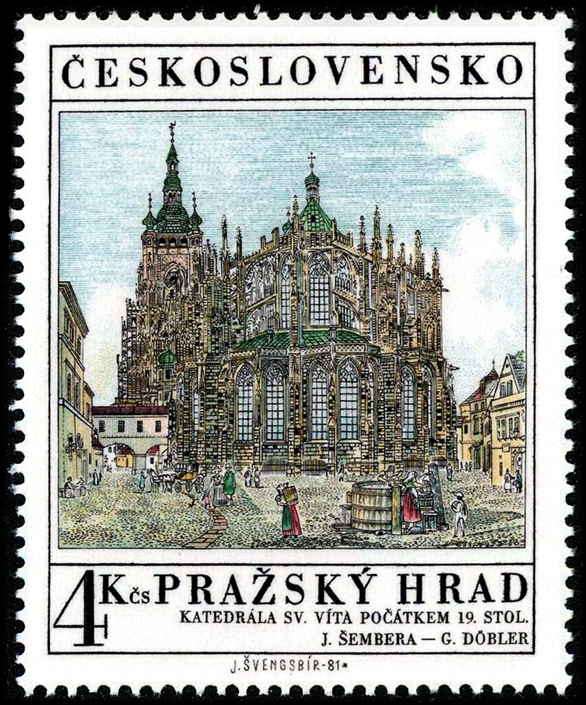 Visibility: public Image owner: none postage 10/28/1981 4kc multi dt=Prague Castle treasures d=St Vitus Cathedral by J Sember & G Dobler 19th cent unwmk perf=11.75 Crops No visible images cropped from this one. Measurements Resolution is unknown. Source Source name: Colnect File URL: http://i.colnect.net/b/4003/038/St-Vitus-Cathedral-by-J-Sember-and-G-Dobler-19th-cent.jpg Uploaded April 21, 2017, 8:02 pm by Stan Shebs |