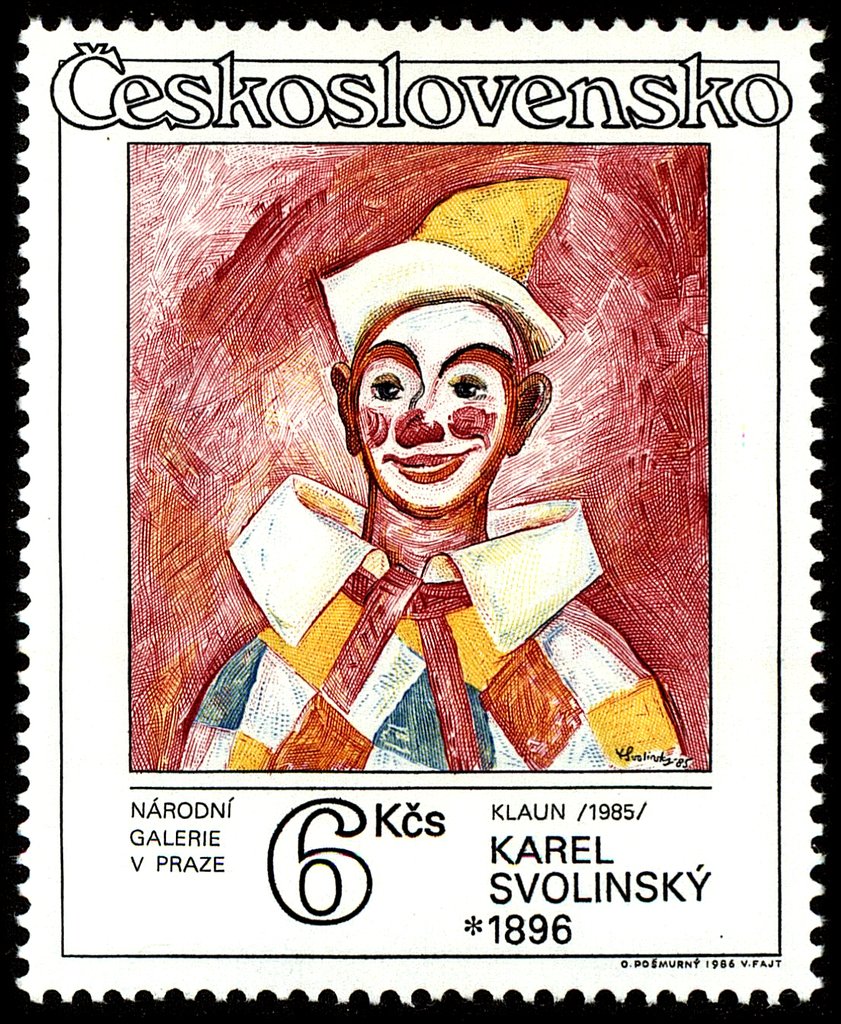 Visibility: public Image owner: none postage 10/13/1986 6kc multi dt=Circus and Variety Acts on Paintings d=Clown by Karel Svolinsky unwmk perf=11.75 Crops No visible images cropped from this one. Measurements Resolution is unknown. Source Source name: Colnect File URL: http://i.colnect.net/b/3796/205/Clown-by-Karel-Svolinsky-1896-1986.jpg Uploaded April 21, 2017, 8:39 pm by Stan Shebs |