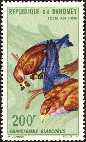 Visibility: public Image owner: none airmail 200fr multi dt=birds (1967 Dahomey) d=Eurystomus glaucurus unwmk Crops No visible images cropped from this one. Measurements Resolution is unknown. Source Source name: Colnect File URL: http://i.colnect.net/b/3592/654/Broad-billed-Roller-Eurystomus-glaucurus.jpg Uploaded April 22, 2017, 11:29 am by Stan Shebs |