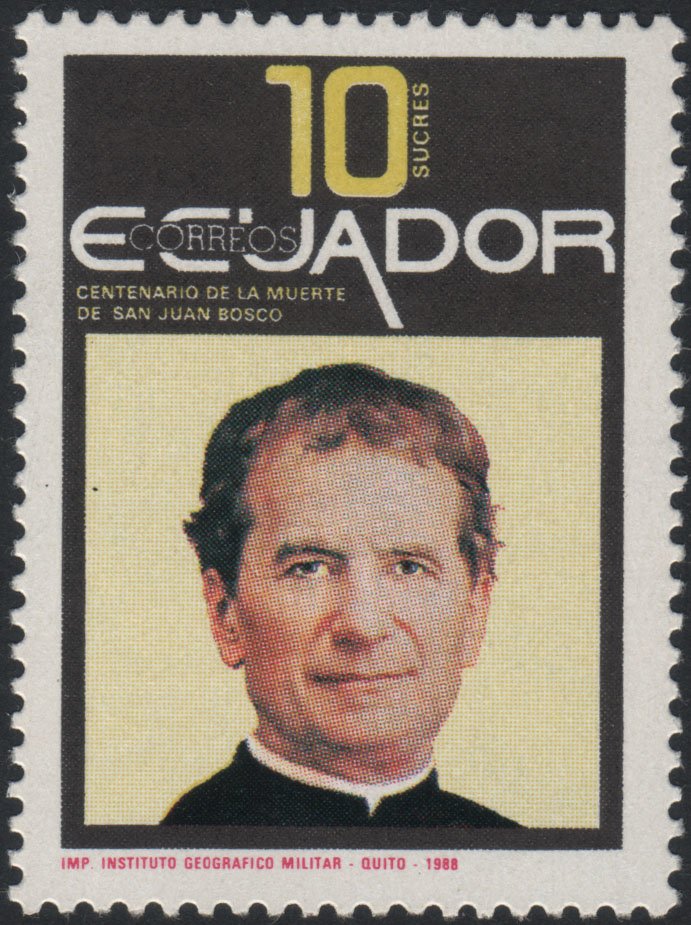 Visibility: public Image owner: none postage 7/29/1988 10s multi issue=100th Anniversary of Salesian Brothers in Ecuador unwmk Crops No visible images cropped from this one. Measurements Resolution is unknown. Source Source name: Colnect File URL: http://i.colnect.net/b/3788/248/Centenario-Muerte-San-Juan-Bosco.jpg Uploaded April 24, 2017, 5:42 pm by Stan Shebs |