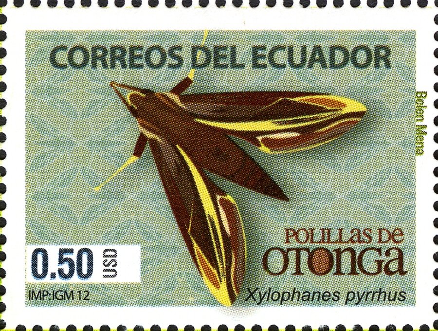 Visibility: public Image owner: none postage 8/29/2012 $0.50 multi dt=Butterflies of Otonga d=Xylophanes pyrrhus unwmk Crops No visible images cropped from this one. Measurements Resolution is unknown. Source Source name: Colnect File URL: http://i.colnect.net/b/3538/774/Moth-Xylophanes-pyrrhus.jpg Uploaded April 24, 2017, 5:55 pm by Stan Shebs |