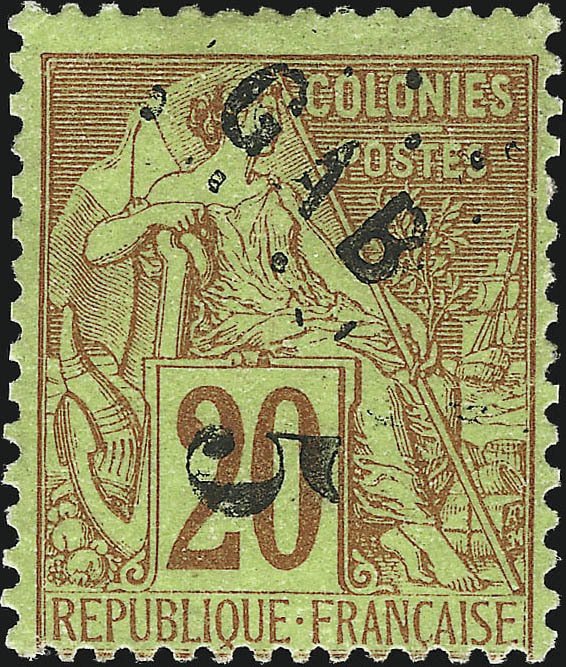 Visibility: public Image owner: none postage 7/1/1886 5c red pc=yelgrn issue=1886 d=Commerce (1881) ovpt=value//GAB oc=blk on=issuer=French Colonies-1881-20c unwmk perf=14x13.5 Crops No visible images cropped from this one. Measurements Resolution is unknown. Source Source name: Colnect File URL: http://i.colnect.net/b/3521/816/Type-Alphee-Dubois.jpg Uploaded April 26, 2017, 4:15 pm by Stan Shebs |