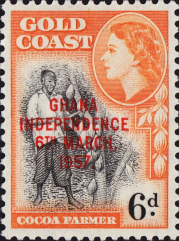 Visibility: public Image owner: none postage 3/6/1957 6p issue=independence ovpt ovpt=GHANA//INDEPENDENCE//6TH MARCH,//1957. oc=blk on=issuer=Gold Coast-6p Crops No visible images cropped from this one. Measurements Resolution is unknown. Source Source name: Colnect File URL: http://i.colnect.net/b/3515/855/Cocoa-harvest.jpg Uploaded April 27, 2017, 6:39 pm by Stan Shebs |