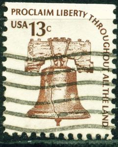 Visibility: public Image owner: none postage 11/13/1975 13c brn issue=Americana d=Liberty Bell (1975) unwmk Crops No visible images cropped from this one. Measurements Resolution is unknown. Source Source name: Colnect (old) File URL: http://i.colnect.net/images/f/514/256/Liberty-Bell.jpg Uploaded November 28, 2012, 6:47 am by Stan Shebs |