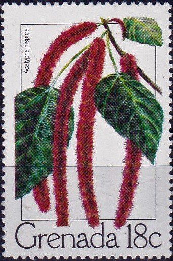 Visibility: public Image owner: none postage 2/26/1979 18c multi dt=flowers (1979 Grenada) d=Acalypha hispida wmk=St Edwards crown & CA perf=14 Crops No visible images cropped from this one. Measurements Resolution is unknown. Source Source name: Colnect File URL: http://i.colnect.net/b/3873/336/Chenille-Plant.jpg Uploaded April 28, 2017, 9:24 pm by Stan Shebs |