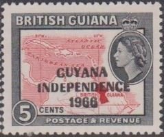 Visibility: public Image owner: none postage 12/22/1967 5c ovpt=GUYANA//INDEPENDENCE//1966 oc=blk on=issuer=British Guiana-5c-wmk=St Edwards crown & CA wmk=St Edwards crown & CA Crops No visible images cropped from this one. Measurements Resolution is unknown. Source Source name: Colnect File URL: http://i.colnect.net/b/3703/502/Independence-stamps.jpg Uploaded May 1, 2017, 5:37 pm by Stan Shebs |