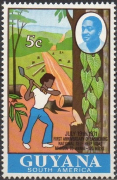 Visibility: public Image owner: none postage 7/19/1971 5c bl&multi issue=road project 1st d=volunteer felling tree wmk=lotus bud mult Crops No visible images cropped from this one. Measurements Resolution is unknown. Source Source name: Colnect File URL: http://i.colnect.net/b/3781/653/National-self-help---Road-Mandia-to-Annai-120-miles.jpg Uploaded May 1, 2017, 5:56 pm by Stan Shebs |