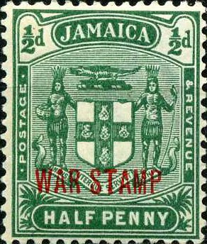 Visibility: public Image owner: none war tax 10/4/1919 1/2p grn d=arms of Jamaica (1906 1/2d) ovpt=WAR STAMP oc=blk on=1906-1/2p-grn wmk=mult crown & CA perf=14 Crops No visible images cropped from this one. Measurements Resolution is unknown. Source Source name: Colnect File URL: http://i.colnect.net/b/3650/711/War-stamps.jpg Uploaded May 6, 2017, 2:53 pm by Stan Shebs |