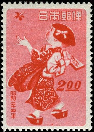 Visibility: public Image owner: none postage 12/13/1948 2y scar d=girl playing wmk=curved wavy lines Crops No visible images cropped from this one. Measurements Resolution is unknown. Source Source name: Colnect File URL: http://i.colnect.net/b/3907/036/New-Year-s-Greetings-Child-Playing-Hanetsuki.jpg Uploaded May 9, 2017, 4:00 pm by Stan Shebs |