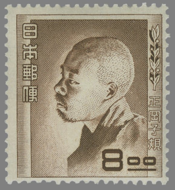 Visibility: public Image owner: none postage 8y brn issue=1949 dt=portraits (1951 Japan) d=Shiki Masaoka unwmk perf=12.5 Crops No visible images cropped from this one. Measurements Resolution is unknown. Source Source name: Colnect File URL: http://i.colnect.net/b/3912/915/Shiki-Masaoka-1867-1902-poet.jpg Uploaded May 9, 2017, 4:20 pm by Stan Shebs |