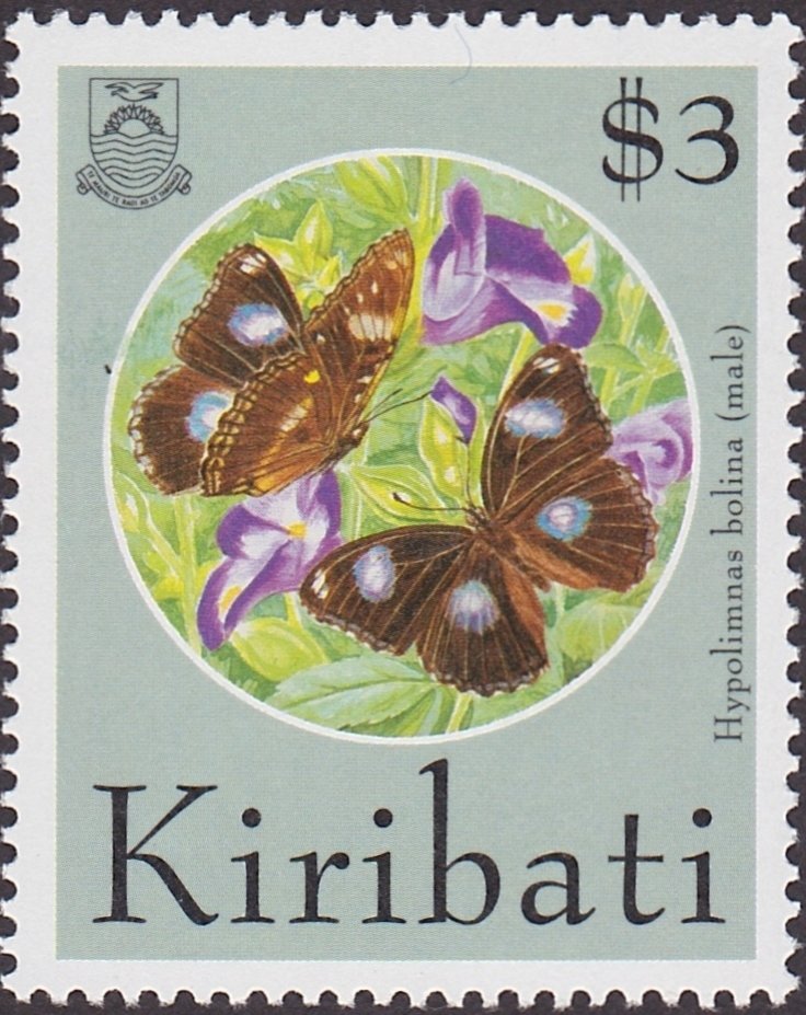 Visibility: public Image owner: none postage 8/19/1994 $3 multi issue=1994 dt=Butterflies and Moths (1994) d=Hypolimnas bolina (1994 Kiribati) wmk=crown & CA spiral perf=14.5x14.25 Crops No visible images cropped from this one. Measurements Resolution is unknown. Source Source name: Colnect File URL: http://i.colnect.net/b/3083/917/Great-Eggfly-Hypolimnas-bolina---Male.jpg Uploaded May 10, 2017, 5:58 pm by Stan Shebs |