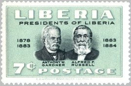 Visibility: public Image owner: none postage 11/18/1948 7c issue=Presidential dt=presidents of Liberia d=Anthony W. Gardner & Alfred F. Russell unwmk perf=12.5 Crops No visible images cropped from this one. Measurements Resolution is unknown. Source Source name: Colnect File URL: http://i.colnect.net/b/3468/960/AW-Gardner---AF-Russell.jpg Uploaded May 11, 2017, 2:51 am by Stan Shebs |