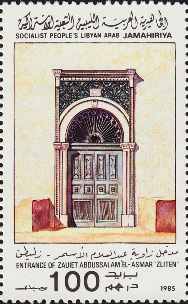Visibility: public Image owner: none postage 9/15/1985 100dh multi dt=Mosque Portals unwmk Crops No visible images cropped from this one. Measurements Resolution is unknown. Source Source name: Colnect File URL: http://i.colnect.net/b/4037/235/Zauiet-Abdussalam-El-Asmar-in-Zliten.jpg Uploaded May 15, 2017, 5:05 pm by Stan Shebs |