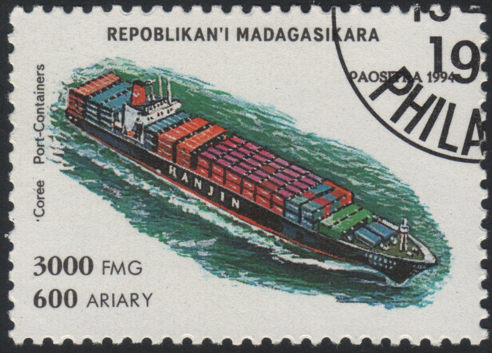 Visibility: public Image owner: none postage 11/15/1994 3000fr multi issue=Ships 1994 unwmk Crops No visible images cropped from this one. Measurements Resolution is unknown. Source Source name: Colnect File URL: http://i.colnect.net/b/3700/761/Corée-Port-Containers.jpg Uploaded May 16, 2017, 4:27 pm by Stan Shebs |