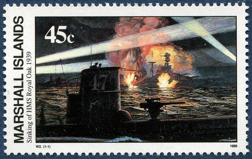Visibility: public Image owner: none postage 10/13/1989 45c multi issue=History of the Second World War - Sinking of H.M.S. "Royal Oak", 1939 unwmk perf=13.5 Crops No visible images cropped from this one. Measurements Resolution is unknown. Source Source name: Colnect File URL: http://i.colnect.net/b/3691/339/sinking-of-Royal-Oak-and-U47-1939.jpg Uploaded May 18, 2017, 2:22 pm by Stan Shebs |
