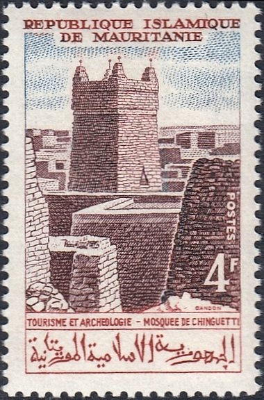 Visibility: public Image owner: none postage 6/14/1965 4fr multi dt=tourism and Archaeology d=mosque of Chinguetti unwmk Crops No visible images cropped from this one. Measurements Resolution is unknown. Source Source name: Colnect File URL: http://i.colnect.net/b/3567/990/Mosque-of-Chinguetti.jpg Uploaded May 18, 2017, 3:45 pm by Stan Shebs |