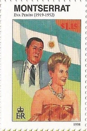 Visibility: public Image owner: none postage 4/28/1998 $1.15 multi dt=Personalities (1998 Montserrat) d=Eva & Juan PerĂ³n wmk=St Edwards crown & CA perf=12.5 Crops No visible images cropped from this one. Measurements Resolution is unknown. Source Source name: Colnect File URL: http://i.colnect.net/b/3648/194/Eva-Peron-1919-1952-Wife-of-Juan-Domingo-Peron.jpg Uploaded May 21, 2017, 12:14 am by Stan Shebs |