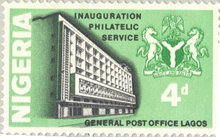 Visibility: public Image owner: none postage 4/11/1969 4p multi issue=Inauguration of Philatelic Service wmk=mult crown & script CA perf=14 Crops No visible images cropped from this one. Measurements Resolution is unknown. Source Source name: Colnect File URL: http://i.colnect.net/b/3862/721/Post-Office-Lagos.jpg Uploaded May 25, 2017, 3:46 pm by Stan Shebs |