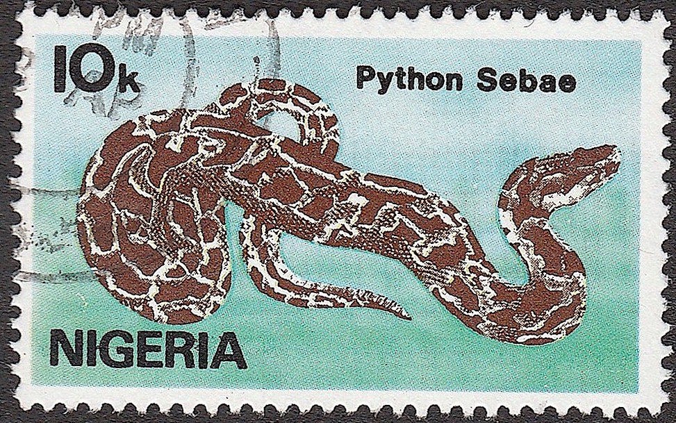 Visibility: public Image owner: none postage 4/15/1986 10k multi dt=African reptiles d=Python sebae (1986) wmk=mult crown & script CA perf=14.25x14 Crops No visible images cropped from this one. Measurements Resolution is unknown. Source Source name: Colnect File URL: http://i.colnect.net/b/3866/235/Python-Python-sebae.jpg Uploaded May 25, 2017, 4:00 pm by Stan Shebs |