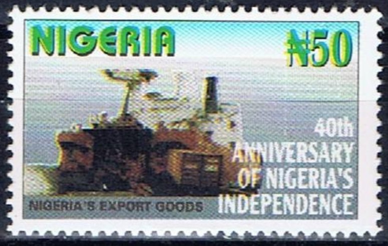 Visibility: public Image owner: none postage 9/27/2000 50n multi issue=40th Anniversary of Nigeria's Independence wmk=mult crown & script CA Crops No visible images cropped from this one. Measurements Resolution is unknown. Source Source name: Colnect File URL: http://i.colnect.net/b/3871/253/Nigeria-s-Export-Goods.jpg Uploaded May 25, 2017, 4:14 pm by Stan Shebs |