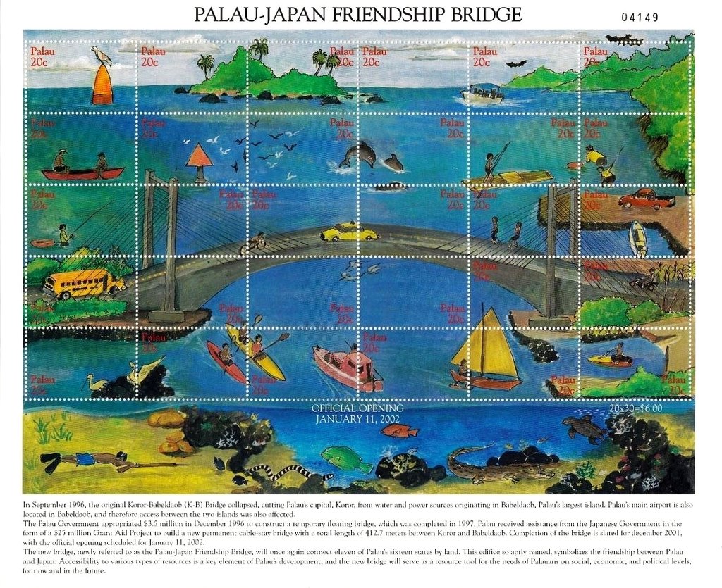 Visibility: public Image owner: none Crops No visible images cropped from this one. Measurements Resolution is unknown. Source Source name: Colnect File URL: http://i.colnect.net/b/3520/942/Opening-of-Palau-Japan-Friendship-Bridge.jpg Uploaded May 26, 2017, 6:49 pm by Stan Shebs |