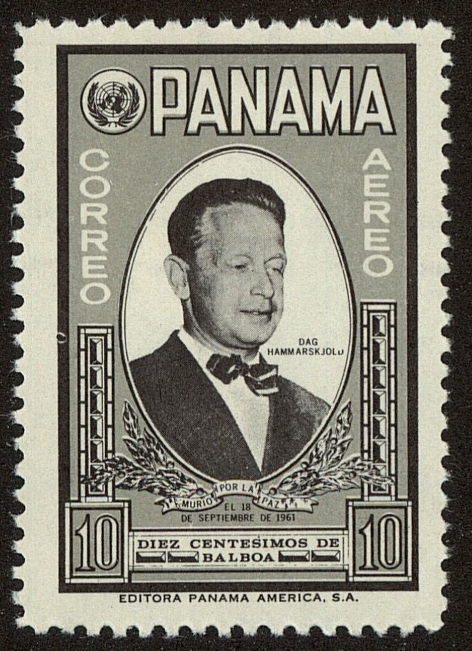 Visibility: public Image owner: none airmail 12/27/1961 10c blk&olgray issue=Death of Dag Hammarskjold Crops No visible images cropped from this one. Measurements Resolution is unknown. Source Source name: Colnect File URL: http://i.colnect.net/b/3654/421/Dag-Hammarskjold-1905-1961-Swedish-politician-and-UN-Secr.jpg Uploaded May 27, 2017, 2:07 am by Stan Shebs |
