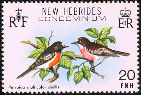 Visibility: public Image owner: none postage 2/27/1980 20fr dt=birds (1980 New Hebrides (Br)) wmk=mult crown & script CA Crops No visible images cropped from this one. Measurements Resolution is unknown. Source Source name: Colnect File URL: http://i.colnect.net/b/3805/709/Petroica-multicolor-similis.jpg Uploaded May 29, 2017, 4:17 am by Stan Shebs |