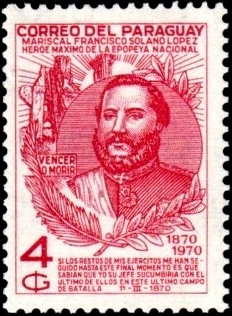Visibility: public Image owner: none postage 3/1/1970 4g d=Francisco Solano Lopez unwmk perf=11 Crops No visible images cropped from this one. Measurements Resolution is unknown. Source Source name: Colnect File URL: http://i.colnect.net/b/3977/668/Marshal-Francisco-S-L-oacute-pez.jpg Uploaded May 29, 2017, 7:47 pm by Stan Shebs |