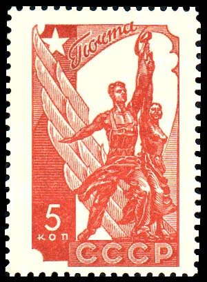 Visibility: public Image owner: none postage 1/1938 5k red issue=1937 International Exposition d=statue on pavilion unwmk perf=12 Crops No visible images cropped from this one. Measurements Resolution is unknown. Source Source name: Colnect File URL: http://i.colnect.net/b/711/464/-Worker-and-Collective-Farmer--sculpture-by-Vera-Mukhina.jpg Uploaded August 25, 2014, 4:08 pm by Stan Shebs |