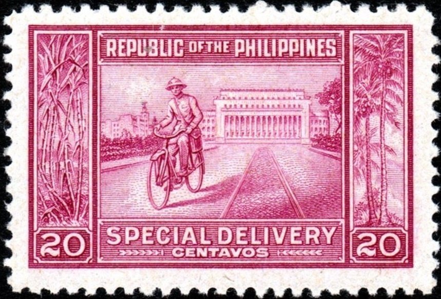 Visibility: public Image owner: none special delivery 12/22/1947 20c roselil d=messenger & Manila Post Office unwmk imperf Crops No visible images cropped from this one. Measurements Resolution is unknown. Source Source name: Colnect File URL: http://i.colnect.net/b/3606/301/Courier-and-Post-office.jpg Uploaded May 30, 2017, 5:36 pm by Stan Shebs |