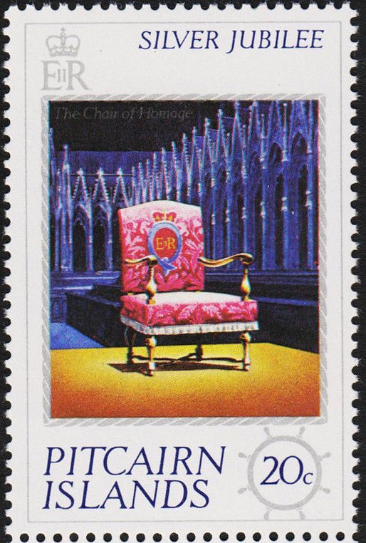 Visibility: public Image owner: none postage 2/6/1977 20c multi issue=Elizabeth II reign 25th d=Chair of homage wmk=St Edwards crown & CA Crops No visible images cropped from this one. Measurements Resolution is unknown. Source Source name: Colnect File URL: http://i.colnect.net/b/3946/530/Chair-of-Homage.jpg Uploaded May 30, 2017, 7:17 pm by Stan Shebs |