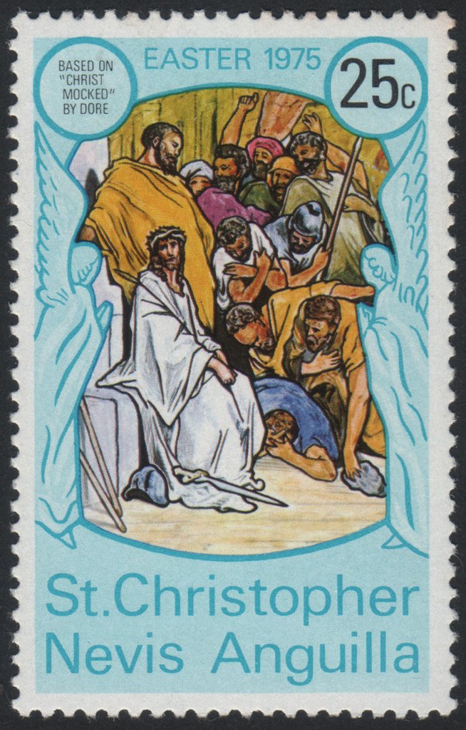 Visibility: public Image owner: none postage 3/24/1975 25c multi issue=Easter 1975 wmk=mult crown & script CA perf=14.5 Crops No visible images cropped from this one. Measurements Resolution is unknown. Source Source name: Colnect File URL: http://i.colnect.net/b/3713/401/Christ-Mocked-Dore.jpg Uploaded June 4, 2017, 10:42 pm by Stan Shebs |