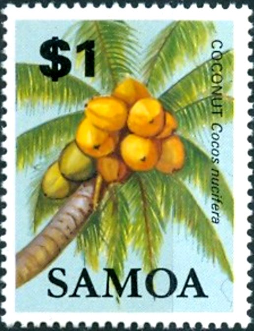 Visibility: public Image owner: none postage 9/28/1983 $1 multi issue=1983 dt=fruits (1983 Samoa) d=Cocos nucifera (1983 Samoa) wmk=crown & CA spiral perf=14x13.5 Crops No visible images cropped from this one. Measurements Resolution is unknown. Source Source name: Colnect File URL: http://i.colnect.net/b/3628/278/Coconut-Cocos-nucifera.jpg Uploaded June 5, 2017, 2:48 pm by Stan Shebs |