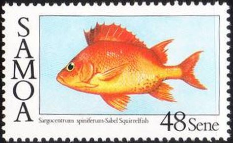 Visibility: public Image owner: none postage 8/13/1986 48s multi dt=fishes (1986 Samoa) d=Sargocentrum spiniferum unwmk Crops No visible images cropped from this one. Measurements Resolution is unknown. Source Source name: Colnect File URL: http://i.colnect.net/b/3637/750/Sargocentrum-spiniferum.jpg Uploaded June 5, 2017, 2:55 pm by Stan Shebs |