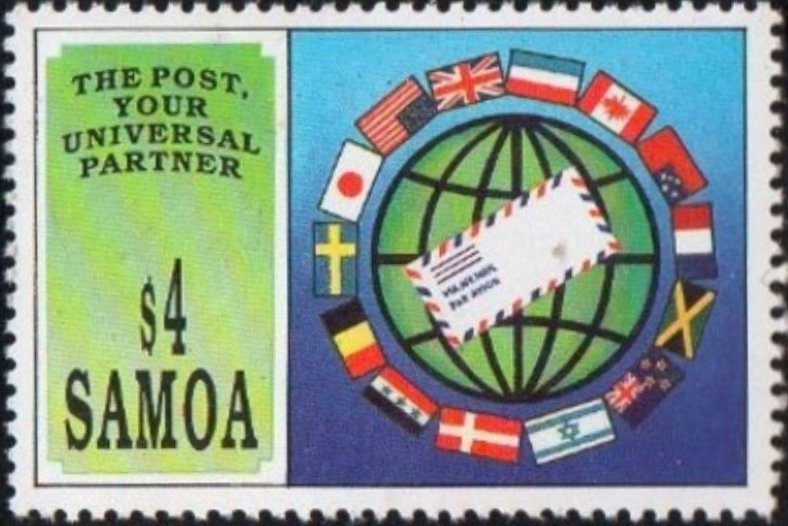 Visibility: public Image owner: none postage 10/8/1993 $4 multi issue=World Post Day 1993 unwmk Crops No visible images cropped from this one. Measurements Resolution is unknown. Source Source name: Colnect File URL: http://i.colnect.net/b/3945/378/The-post-your-universal-partner.jpg Uploaded June 5, 2017, 3:00 pm by Stan Shebs |